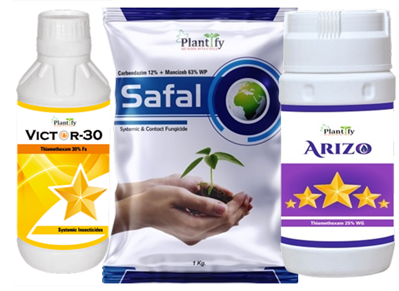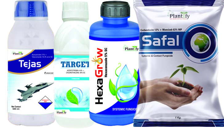 Plantify fungicides combine preventive and curative action to control fungal infections that reduce crop quality. Powered by Azoxystrobin, Tebuconazole, Mancozeb, and Hexaconazole, they protect plants through critical growth stages and ensure disease-free harvests.